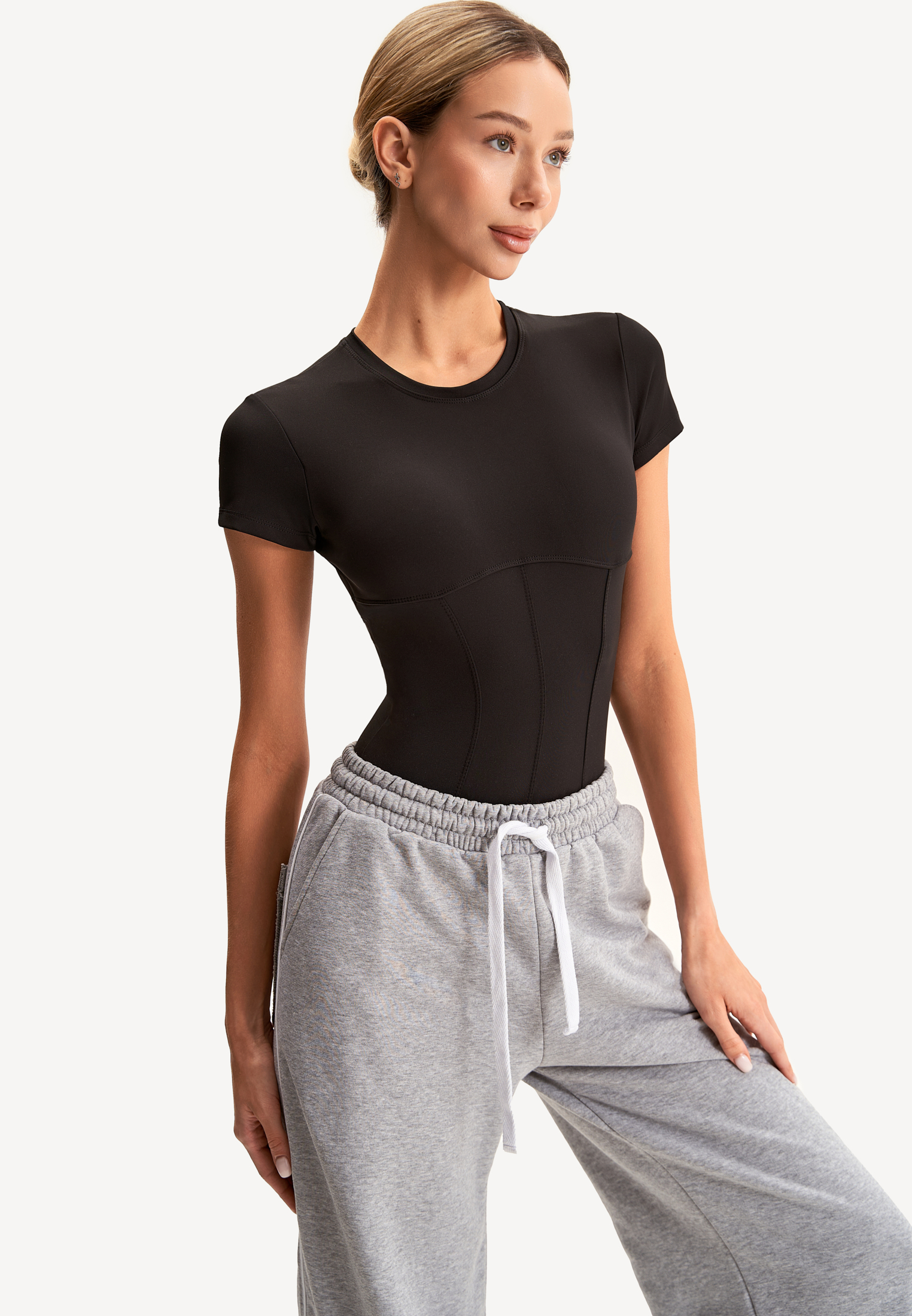 Женское боди в черном цвете – универсальная базовая вещь, которая сочетает в себе элегантность и комфорт. Классическое боди-футболка – с короткими рукавами и круглым вырезом. Преимущества: