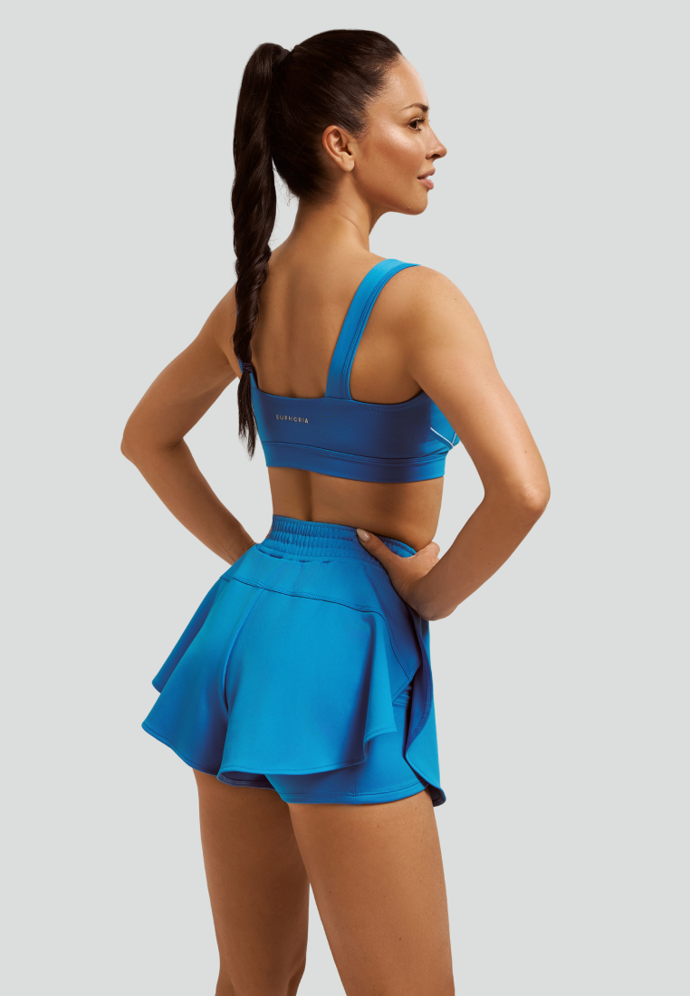 Верхняя часть представлена свободно сидящими шортами с широкой юбочкой, придающей изделию воздушность и элегантность. Ключевые характеристики верхнего слоя: